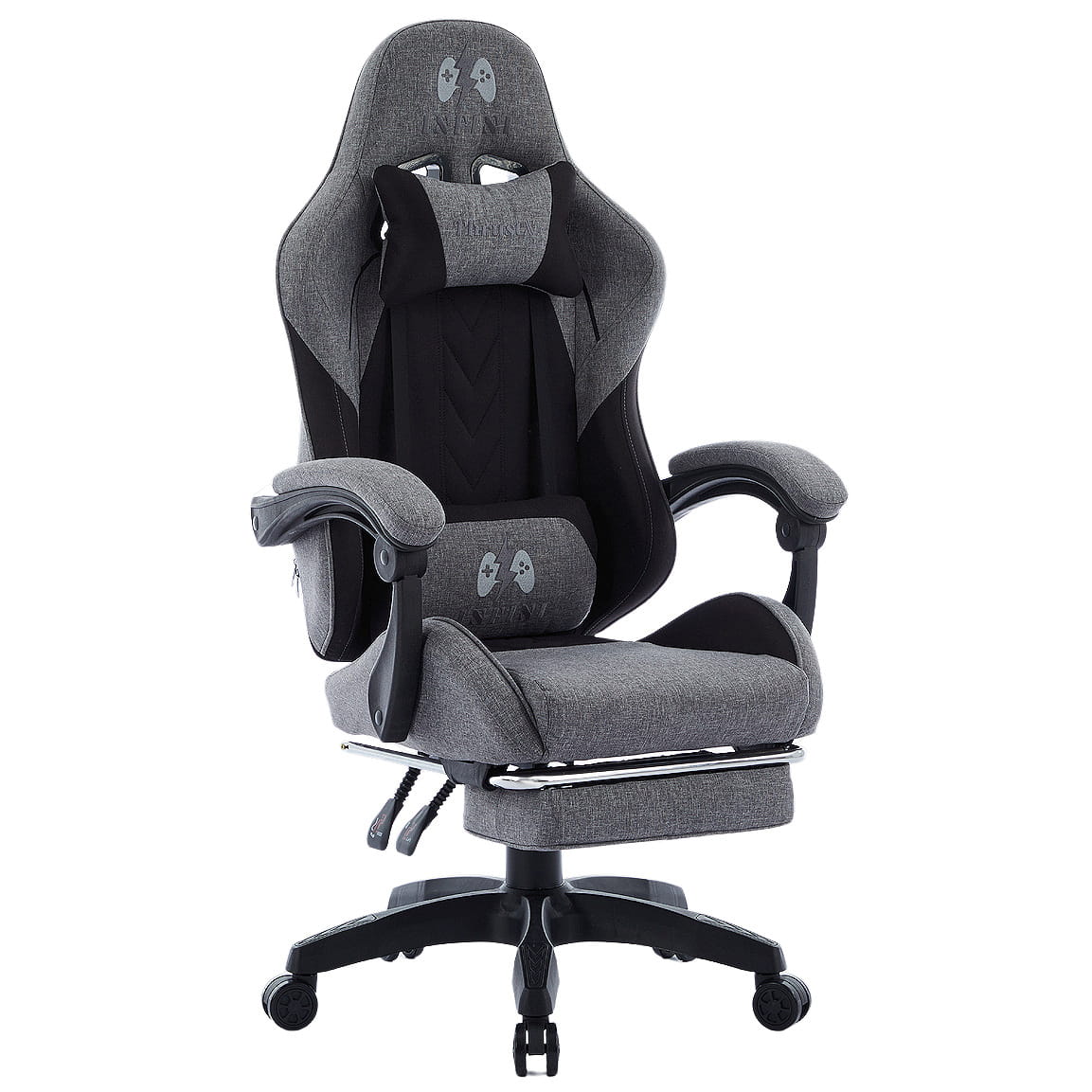 Fotel Gamingowy INFINI ThrustX to wygodne krzesło przeznaczone głównie dla entuzjastów gier komputerowych. Konstrukcja fotela obejmuje obicie wykonane z tkaniny i wysuwany miękki podnóżek. Dodatkowo, fotel wyposażony jest w dwie regulowane, odpinane poduszki, co pozwala dostosować go do indywidualnych preferencji użytkownika.