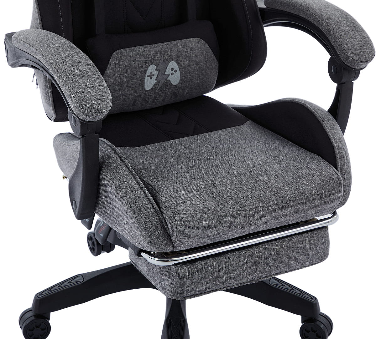 Dodatkowy komfort: Wysuwany podnóżek zapewnia dodatkowe wsparcie dla nóg, co pozwala użytkownikowi na wygodne rozprostowanie się i relaks podczas długich sesji grania.