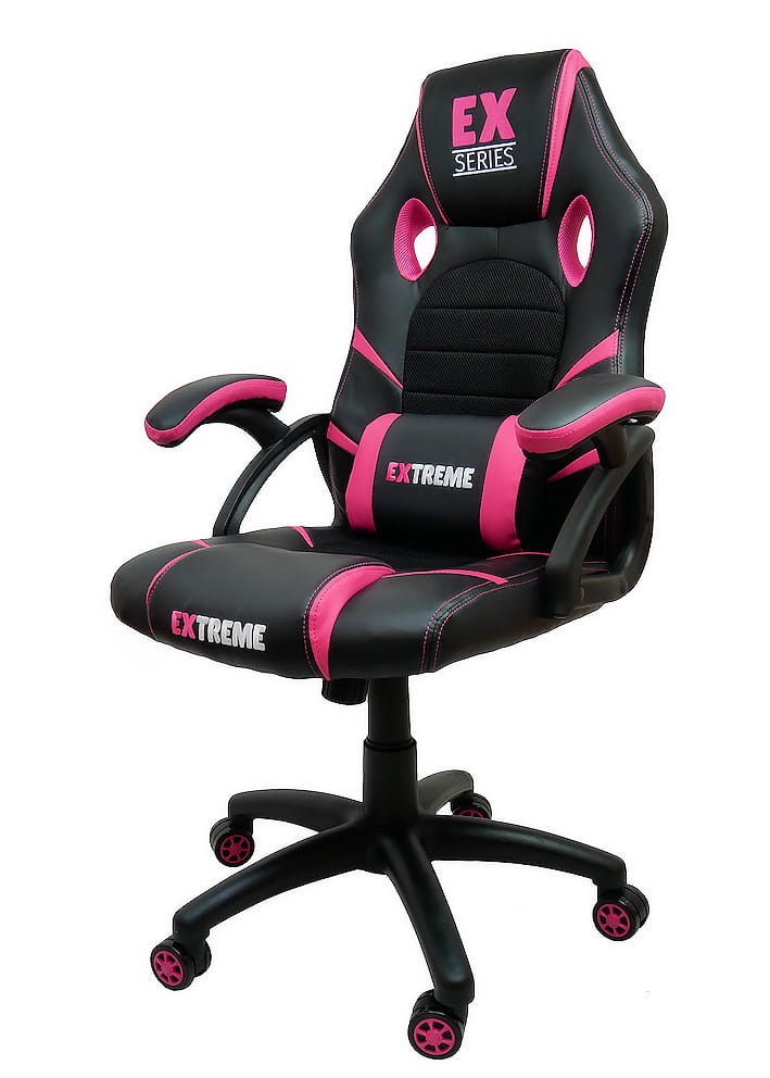 Fotel Gamingowy czarno/różowy model Extreme EX Pink - poduszka na lędźwie w zestawie